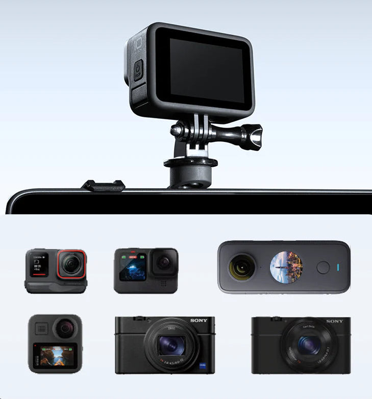 Attach your action camera to the camera adapter, then mount the adapter onto the Camera Mount. Slide the connection slot into the rail to begin recording your journey. This setup allows you to capture high-quality footage hands-free, ensuring stable, precise, and reliable recording so you never miss a moment of your drive.